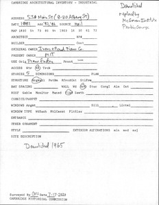 500 Main St - MIT Bldg 76 - Koch Institute - Architectural Inventory Form