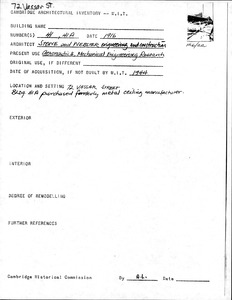 72 Vassar St - MIT Bldg 26 - Compton Labs - Architectural Inventory Form
