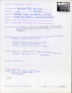 105R Massachusetts Ave - MIT Bldg 15 - Vannevar Bush Bldg - Architectural Inventory Form