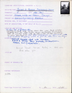 40 Massachusetts Ave - MIT Bldg W11 - Center for Advanced Visual Studies - Architectural Inventory Form