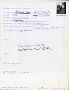 48 Massachusetts Ave - MIT Bexley Hall - Architectural Inventory Form