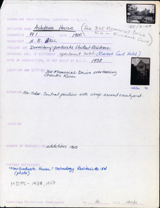 305 Memorial Dr - MIT Ashdown House - Architectural Inventory Form
