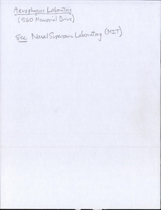 560 Memorial Dr - MIT Bldg - Naval Supersonic Laboratory - Research Notes
