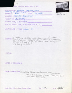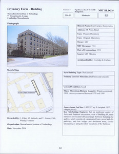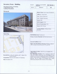 3 Ames St - MIT Bldg 64 -- East Campus Dormitories - Architectural Inventory Form