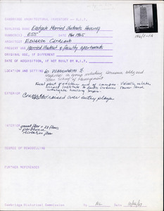60 Wadsworth St - MIT Bldg E55 - Eastgate - Architectural Inventory Form