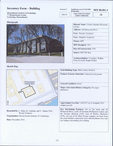 170 Memorial Dr - MIT Bldg 14 - Hayden Library - Architectural Inventory Form