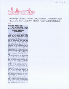 134 Memorial Dr - MIT Bldg 51 - Sailing Pavilion - Ephemera