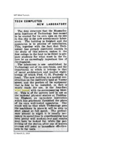 76 Vassar St - MIT Bldg 17 - Wright Brothers Wind Tunnel - Published Material