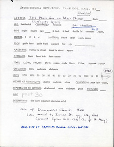 385 Massachusetts Ave - Architectural Inventory Form 385 Massachusetts Ave - Architectural Inventory Form