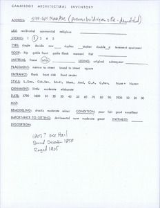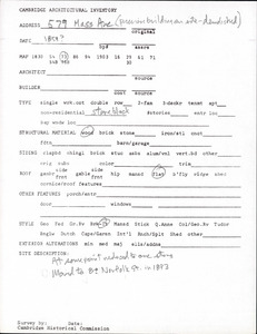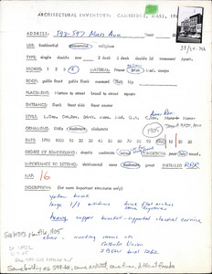 579 Massachusetts Ave - Architectural Inventory Form