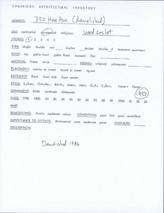 350 Massachusetts Ave - Architectural Inventory Form