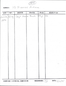 10 Francis Ave - Research Form