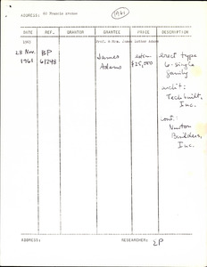 64 Francis Ave - Research Notes