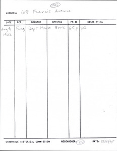 68 Francis Ave - Research Form