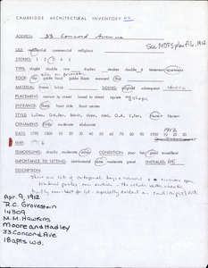 33 Concord Ave - Architectural Inventory Form
