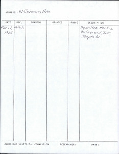 31 Concord Ave - Research Form