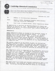 33 Oxford St - Aiken Computnig Laboratory - Demolition Memo