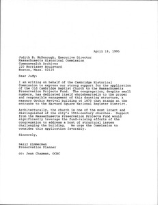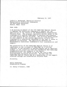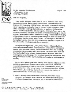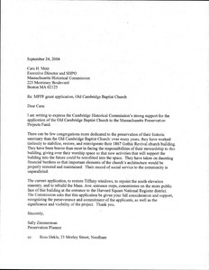 398 Harvard St - Old Cambridge Baptist Church - Correspondence