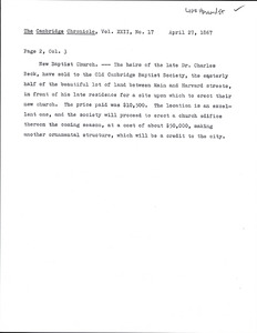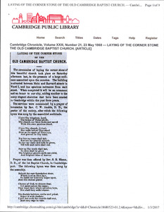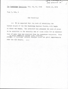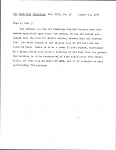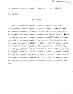 398 Harvard St - Old Cambridge Baptist Church - Published Material