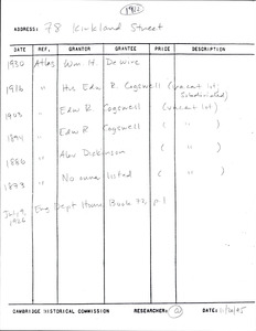 78 Kirkland St - Research Form