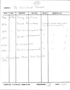 82 Kirkland St - Research Form
