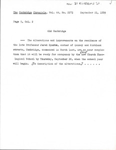 21 Kirkland St Jared Sparks House Moved Fr 48 Quincy