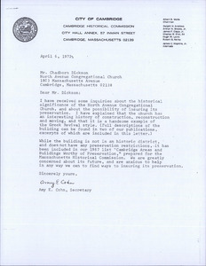 1803 Massachusetts Ave - North Ave Congregational Church - Correspondence