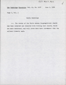 1803 Massachusetts Ave - North Ave Congregational Church - Published Material