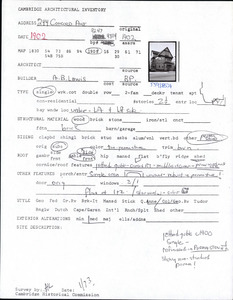 244 Concord Ave - Architectural Inventory Form