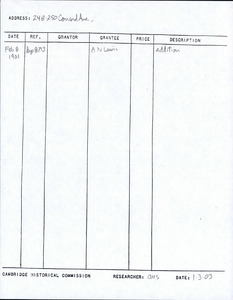 248-250 Concord Ave - Research Form