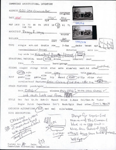 256 Concord Ave - Architectural Inventory Form