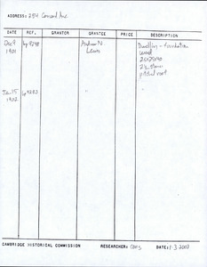254 Concord Ave - Research Form