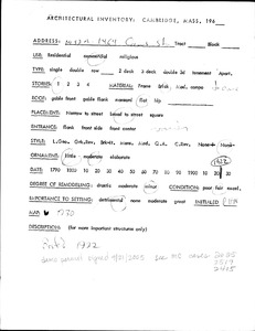 1436 Cambridge St - Architectural Inventory Form