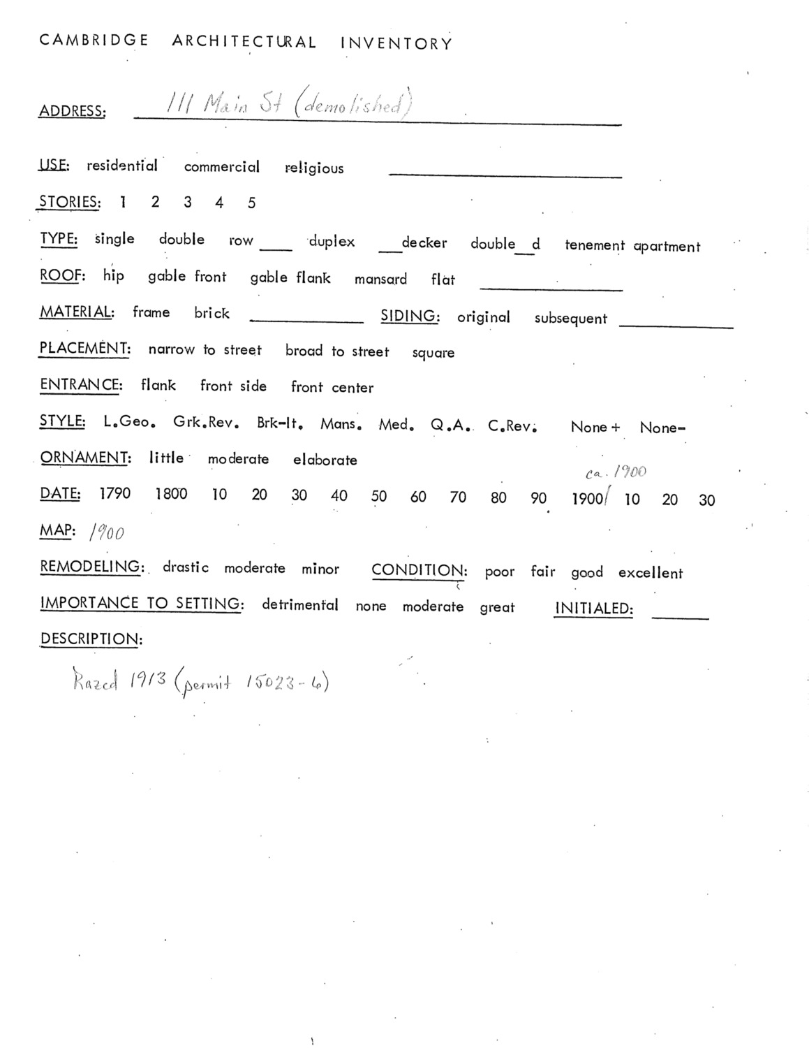 - Cambridge Historical Commission, Digital Architectural Survey and History.