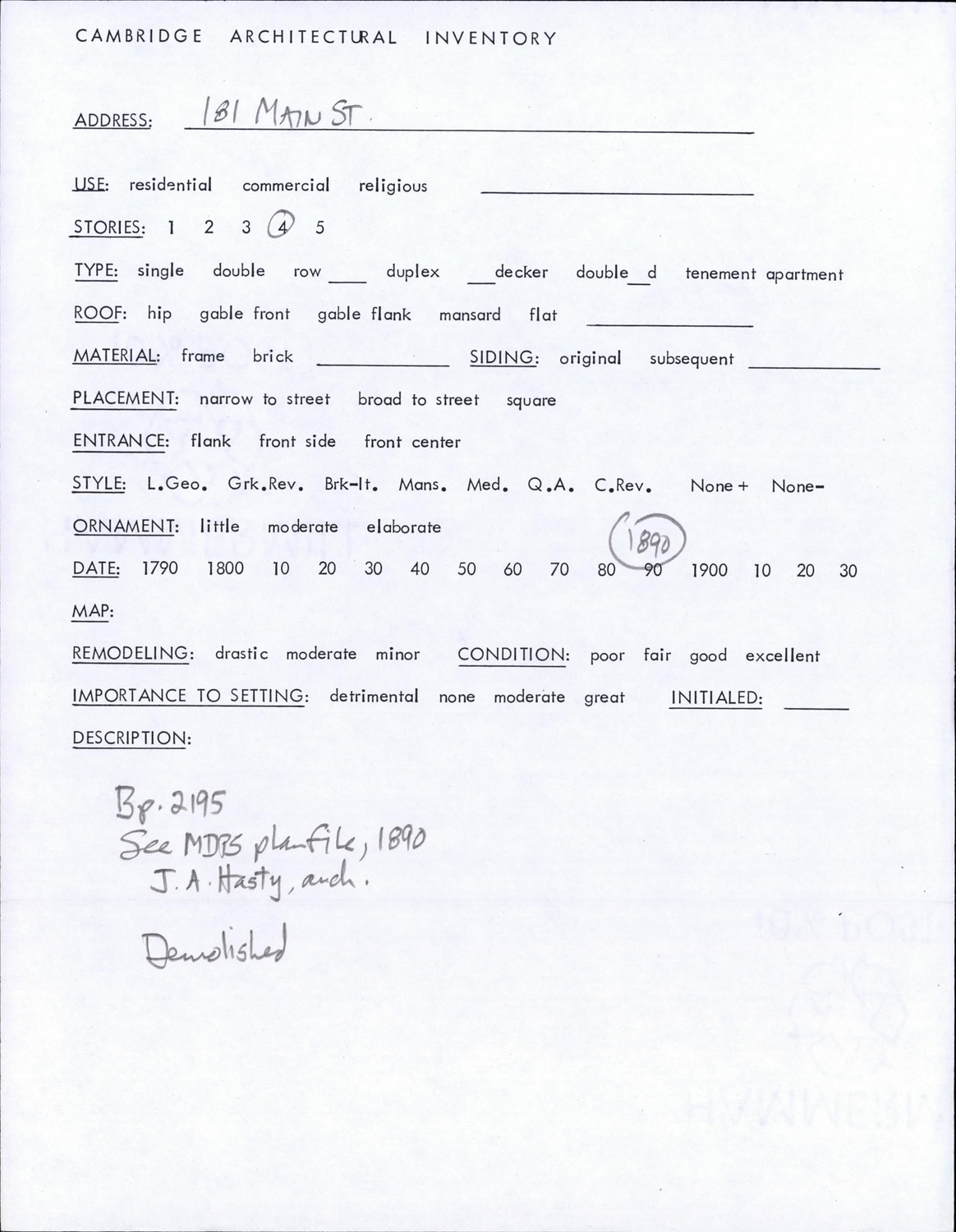 - Cambridge Historical Commission, Digital Architectural Survey and History.