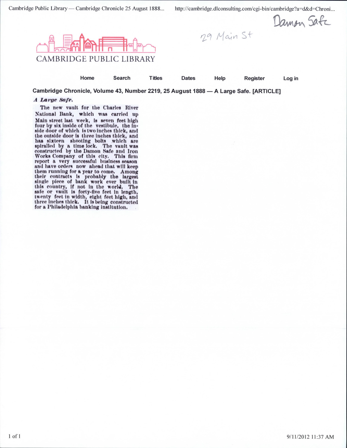 29 Main St - Published Material