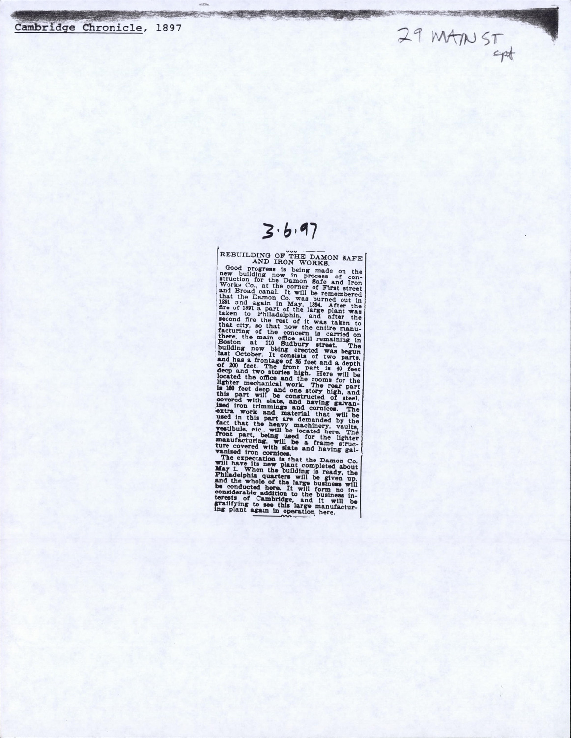 29 Main St - Published Material