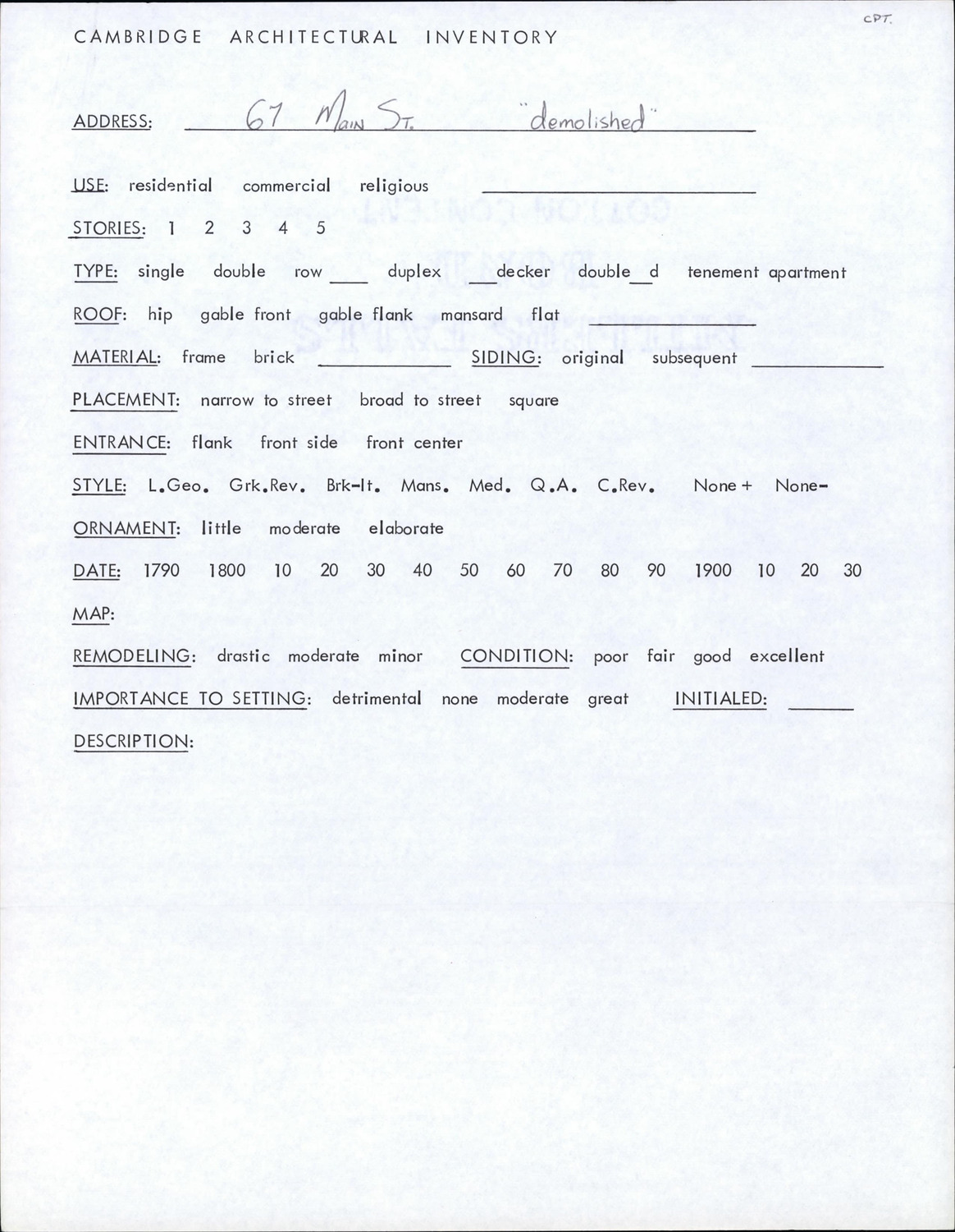 67 Main St - Architectural Inventory Form