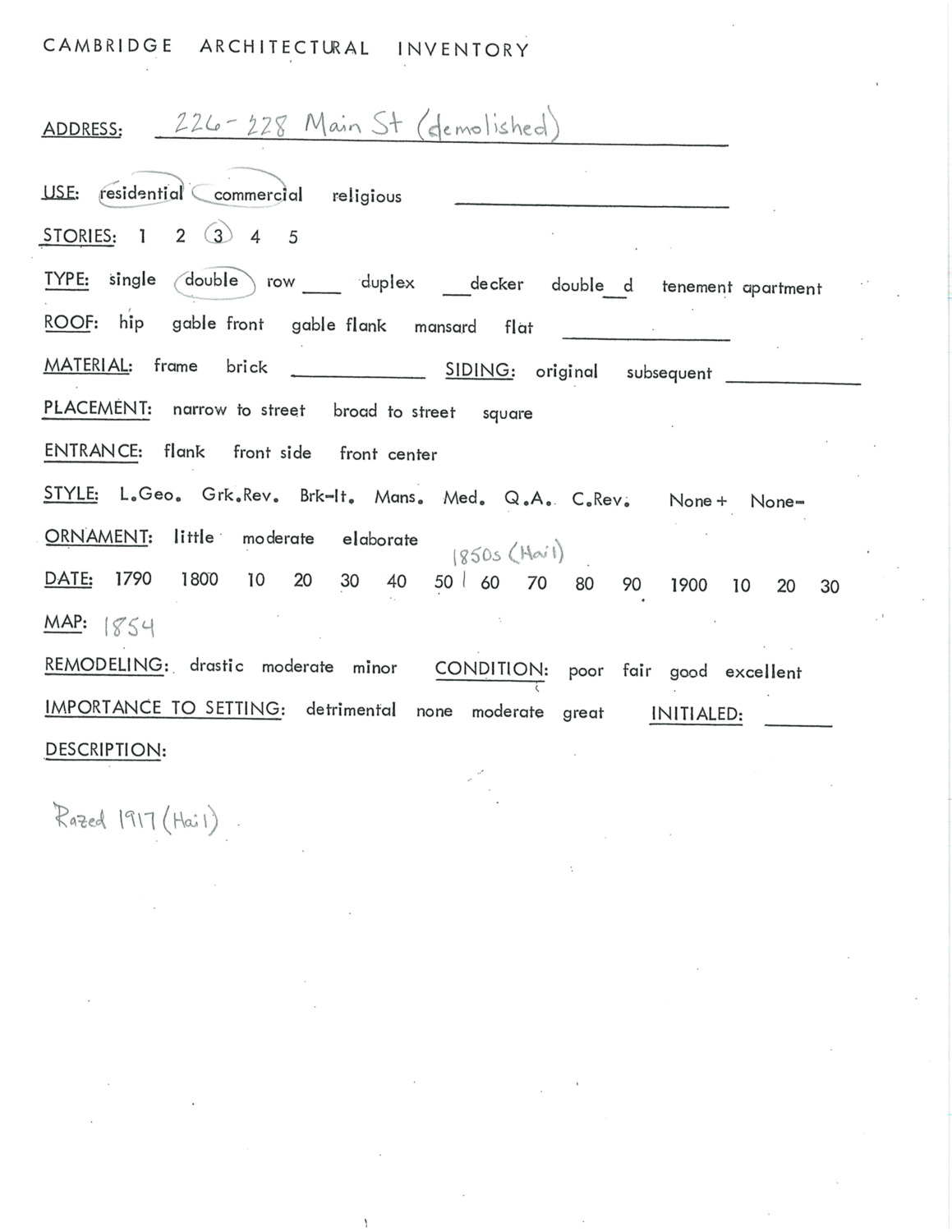- Cambridge Historical Commission, Digital Architectural Survey and History.
