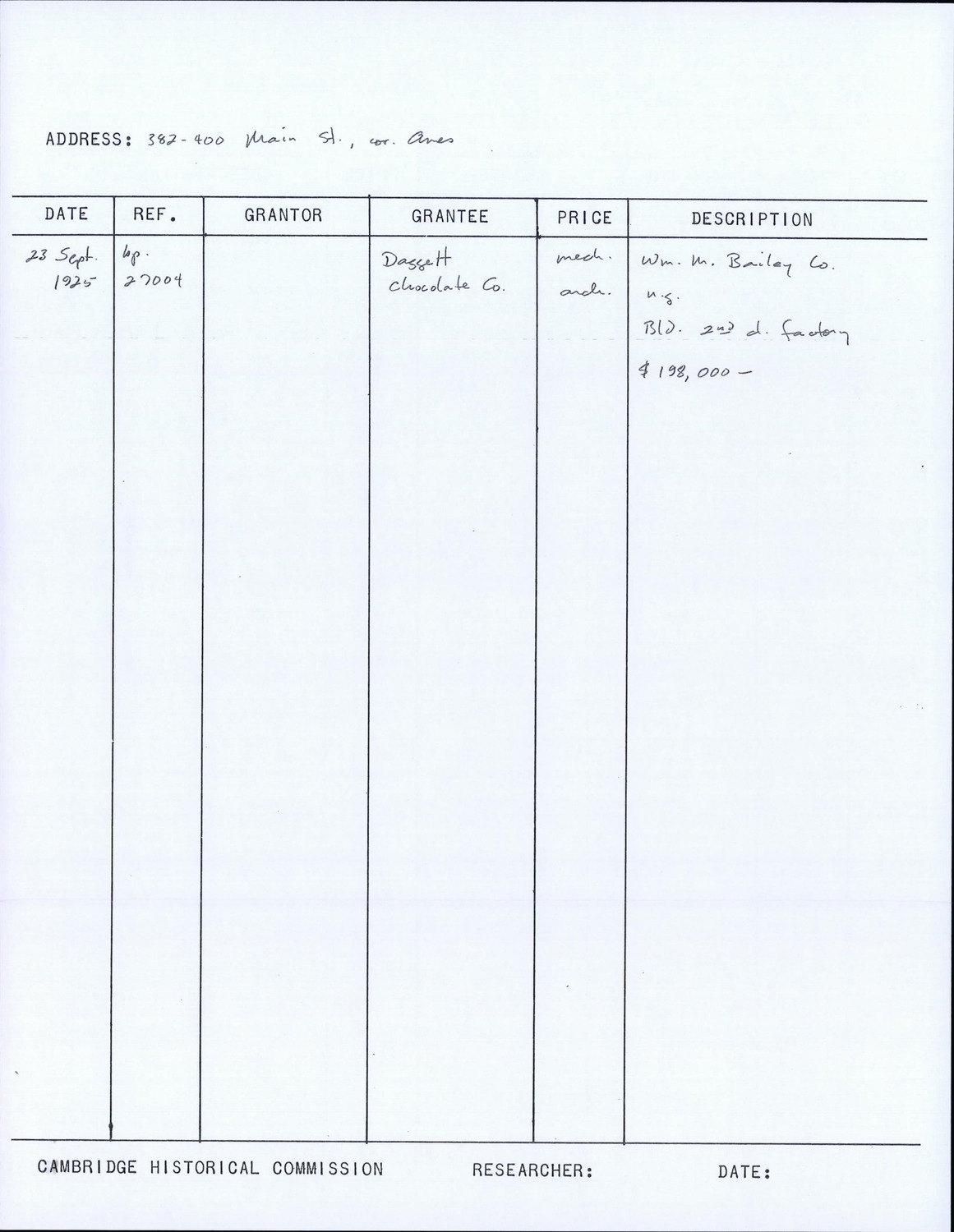 - Cambridge Historical Commission, Digital Architectural Survey and History.