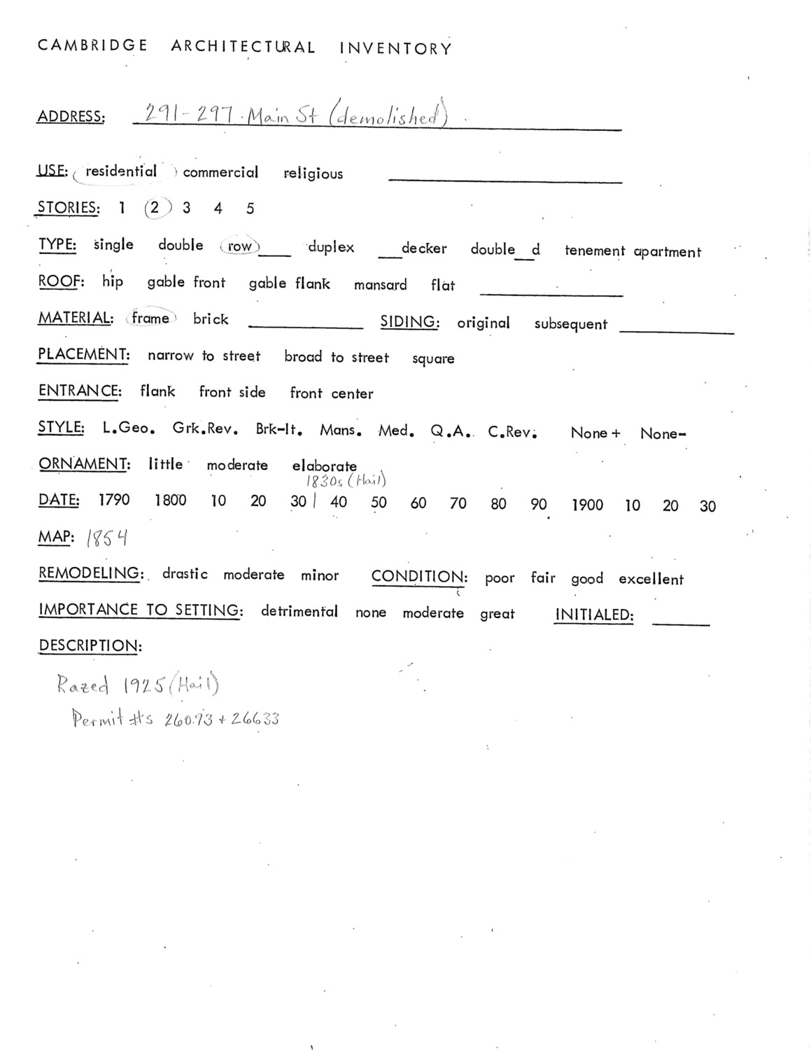 - Cambridge Historical Commission, Digital Architectural Survey and History.