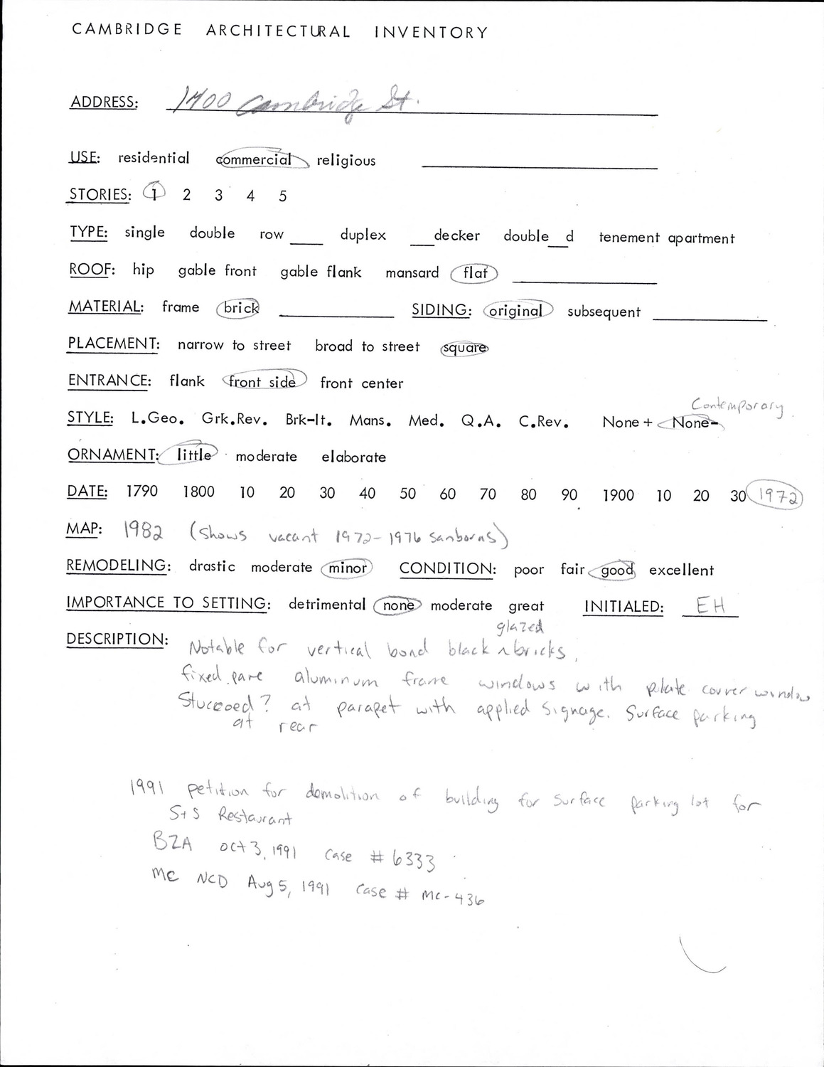 1400 Cambridge St - Architectural Inventory Form