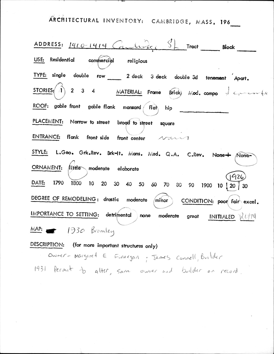 - Cambridge Historical Commission, Digital Architectural Survey and History.