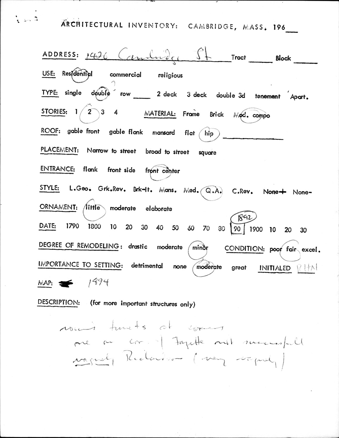 1426 Cambridge St - Architectural Inventory Form