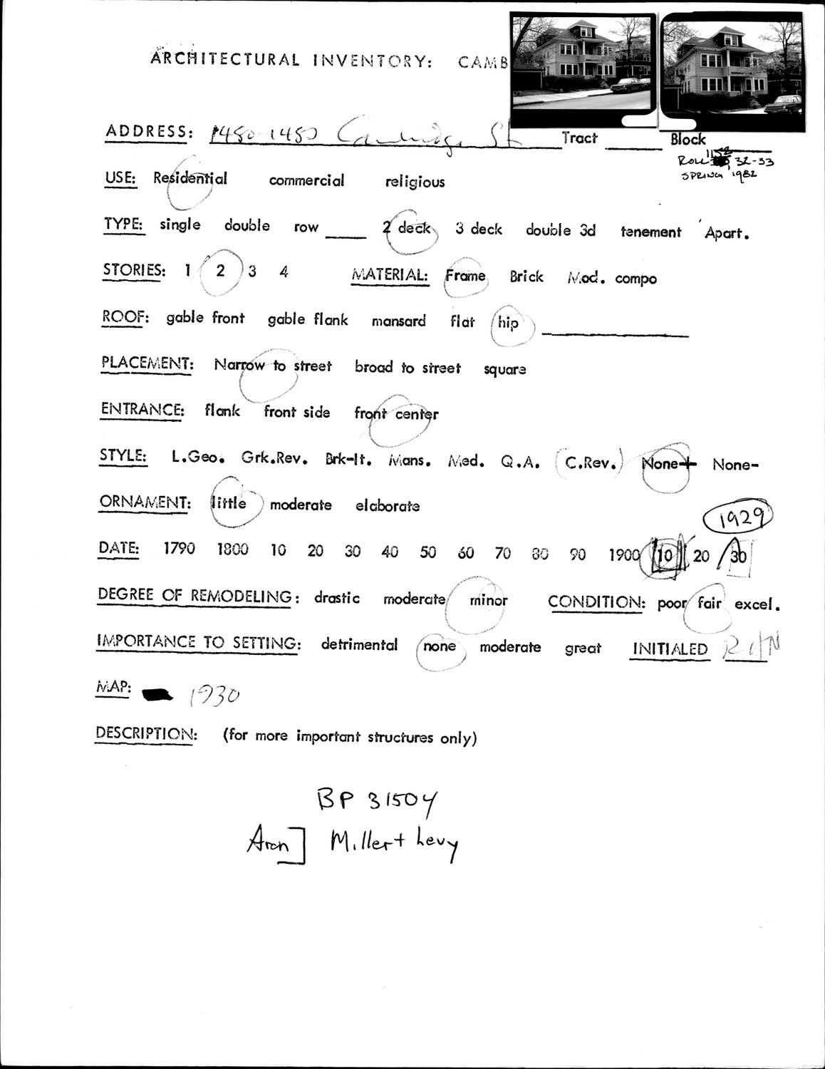 - Cambridge Historical Commission, Digital Architectural Survey and History.