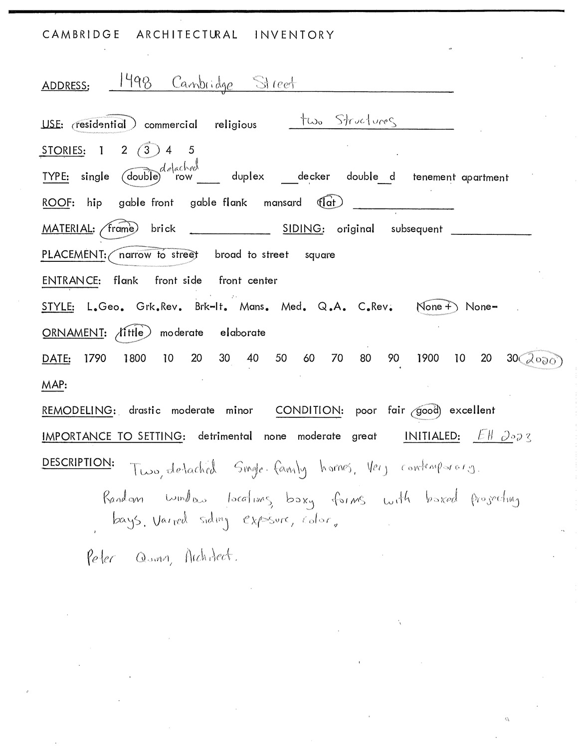 1498 Cambridge St - Architectural Inventory Form