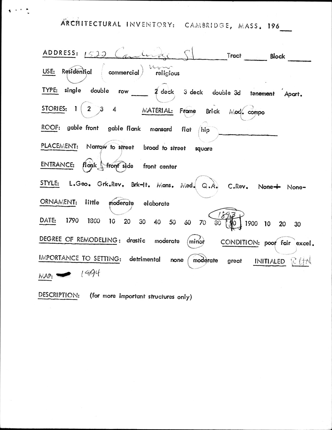 1522 Cambridge St - Architectural Inventory Form