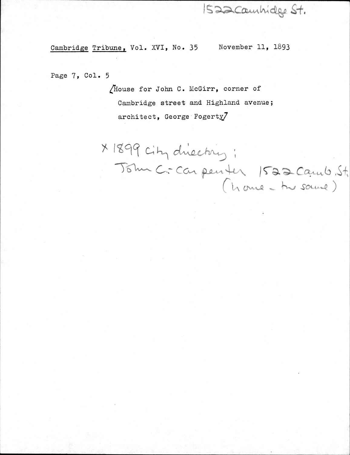 - Cambridge Historical Commission, Digital Architectural Survey and History.