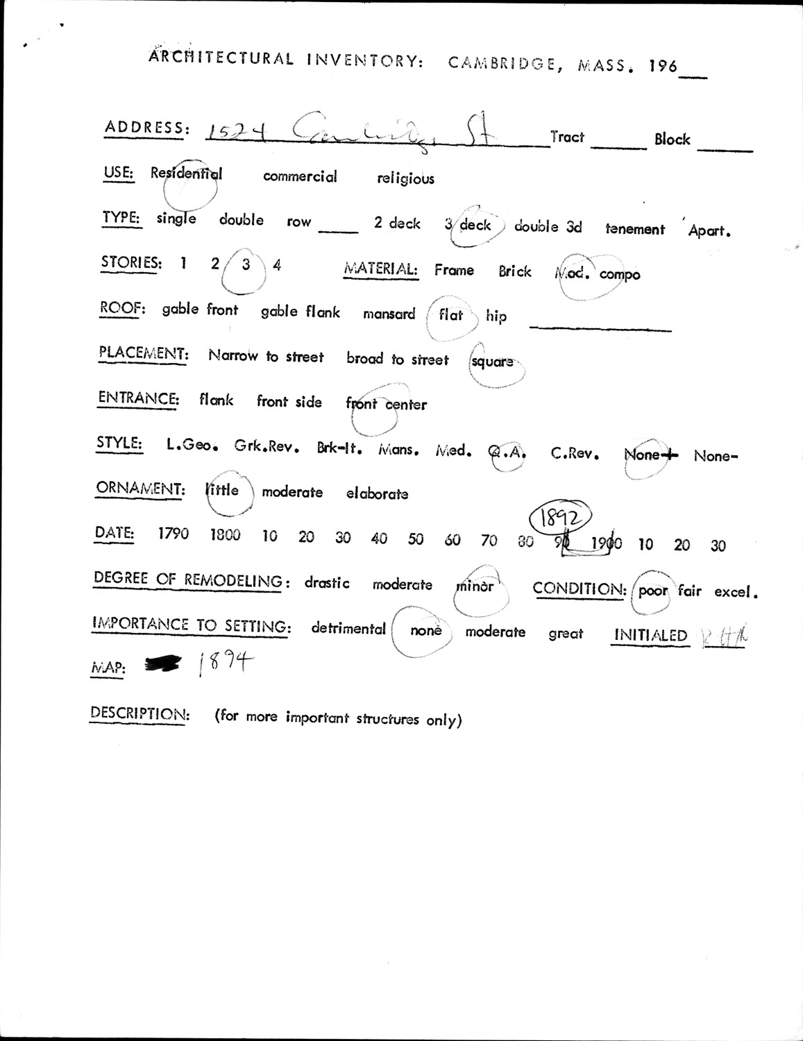 1524 Cambridge St - Architectural Inventory Form