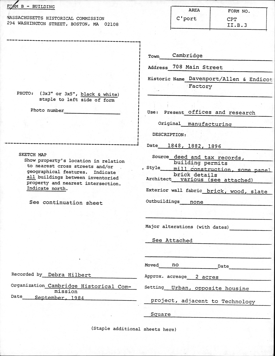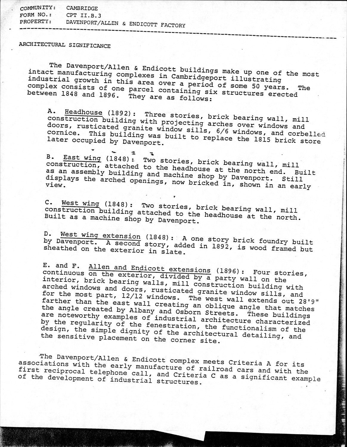 - Cambridge Historical Commission, Digital Architectural Survey and History.